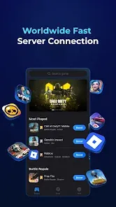 يبرع تطبيق GearUP Game Booster مهكر أحدث إصدار في الموازنة بين القوة والبساطة، مقدماً واحدة من أنظف الواجهات في فئته. بمجرد فتح التطبيق، يتم استقبال المستخدم بتصميم بديهي يخلو من أي تعقيدات، حيث يتم عرض الألعاب المثبتة على الجهاز بوضوح. هذه الواجهة البسيطة مصممة لتجعل عملية تسريع الألعاب تتم بحركة واحدة؛ فكل ما يتطلبه الأمر هو اختيار اللعبة التي ترغب في لعبها والضغط على زر “تسريع”، ليتولى التطبيق الباقي. هذا التوجه نحو البساطة يجعله مثالياً لجميع فئات اللاعبين، حتى أولئك الذين ليس لديهم أي خبرة تقنية سابقة في أدوات تحسين الشبكة.